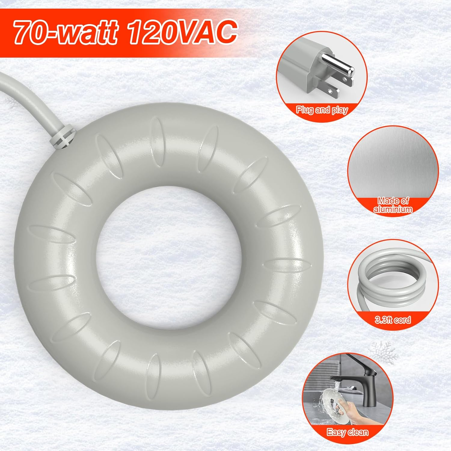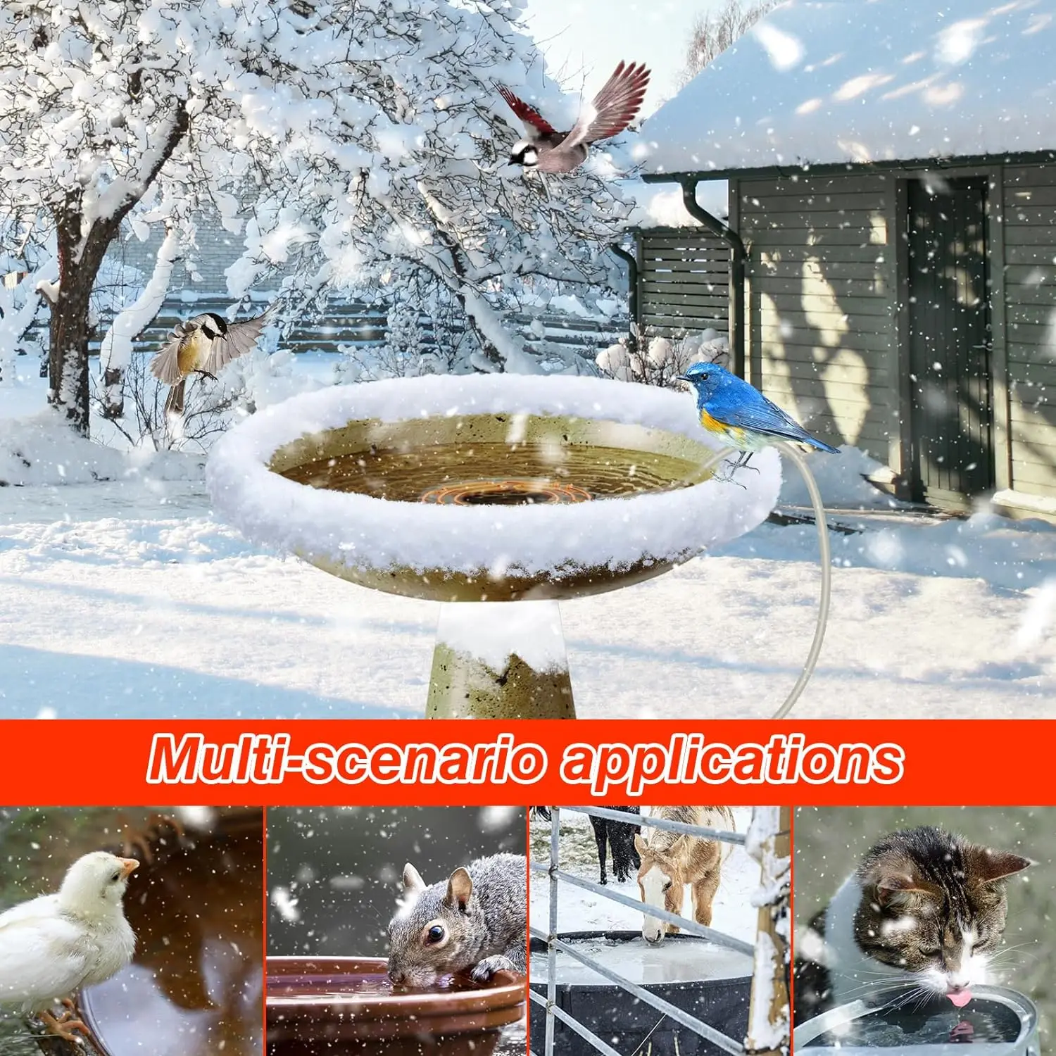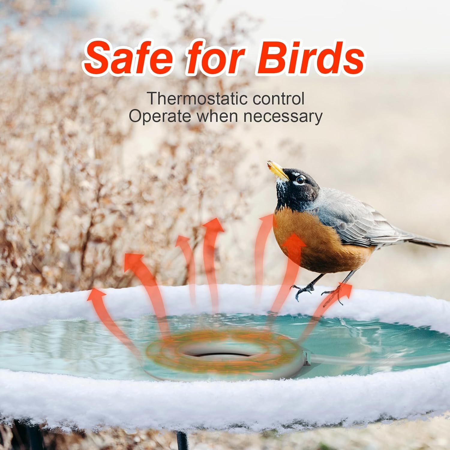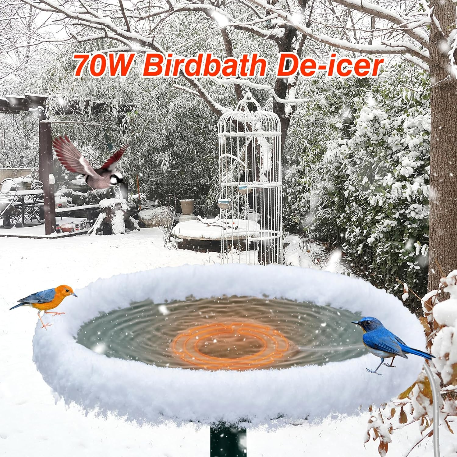 FUNCTION: 70W, bird bath de-icer with thermostat. This birdbath heater will keep the standard birdbath from freezing in winter, thermostatically controlled to operate only when necessary, will not heat up the water! Low power can ensure safe use and save electricity.