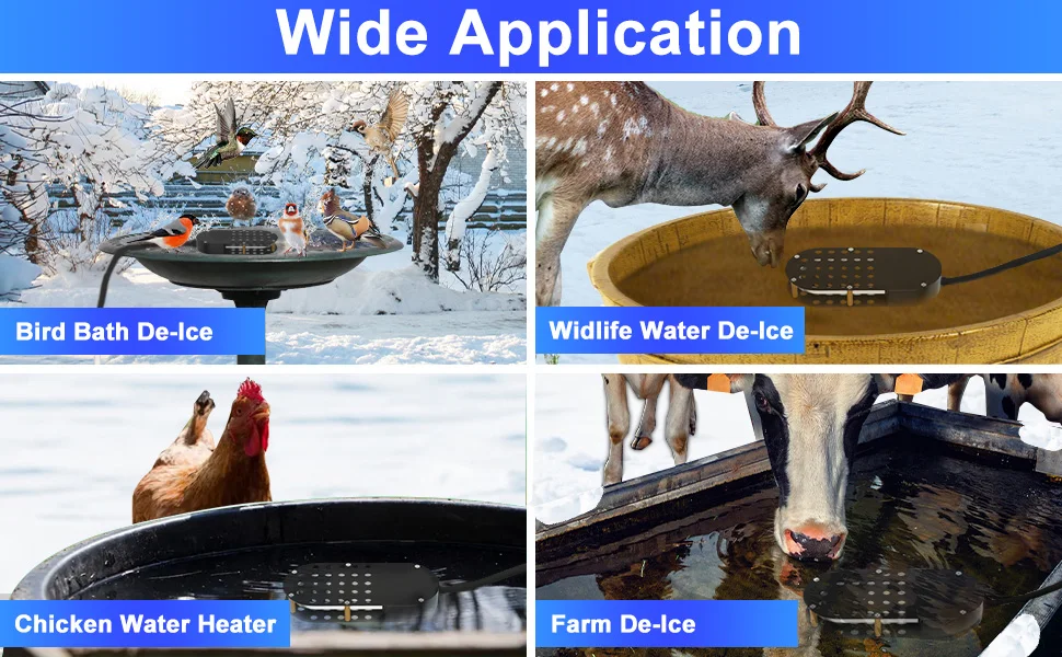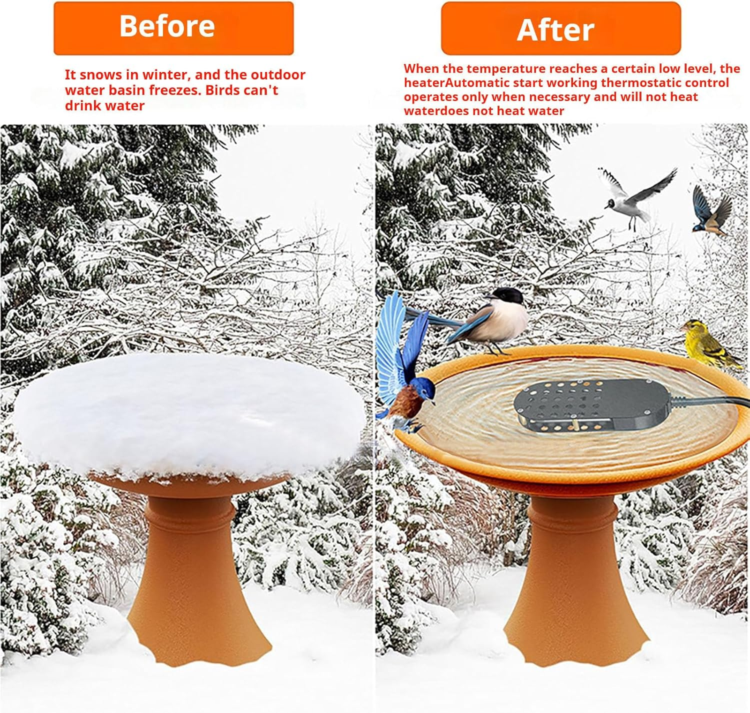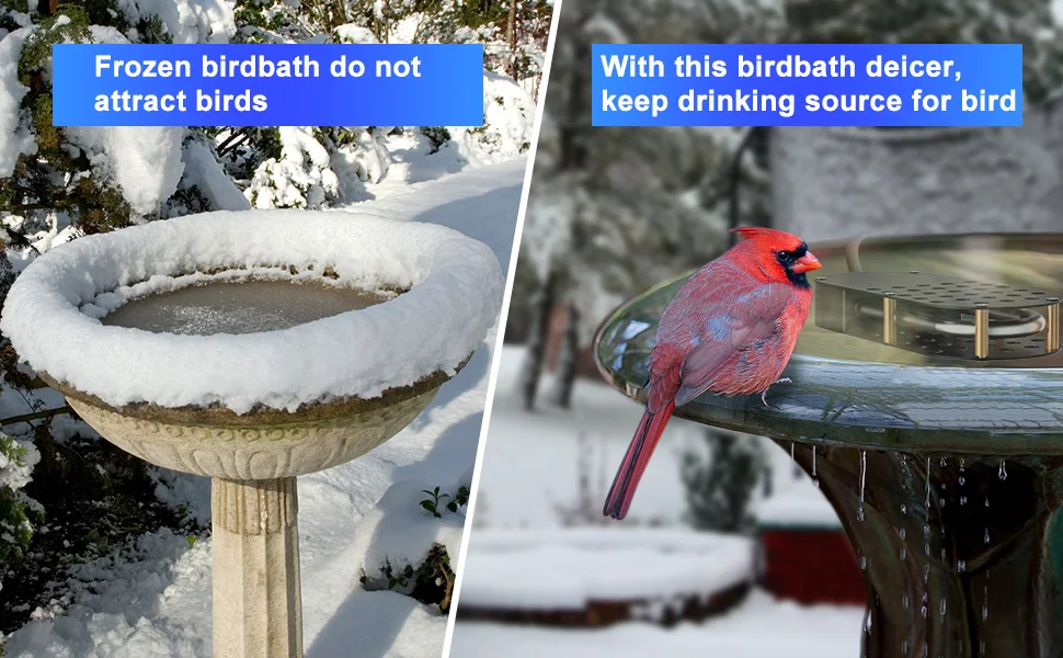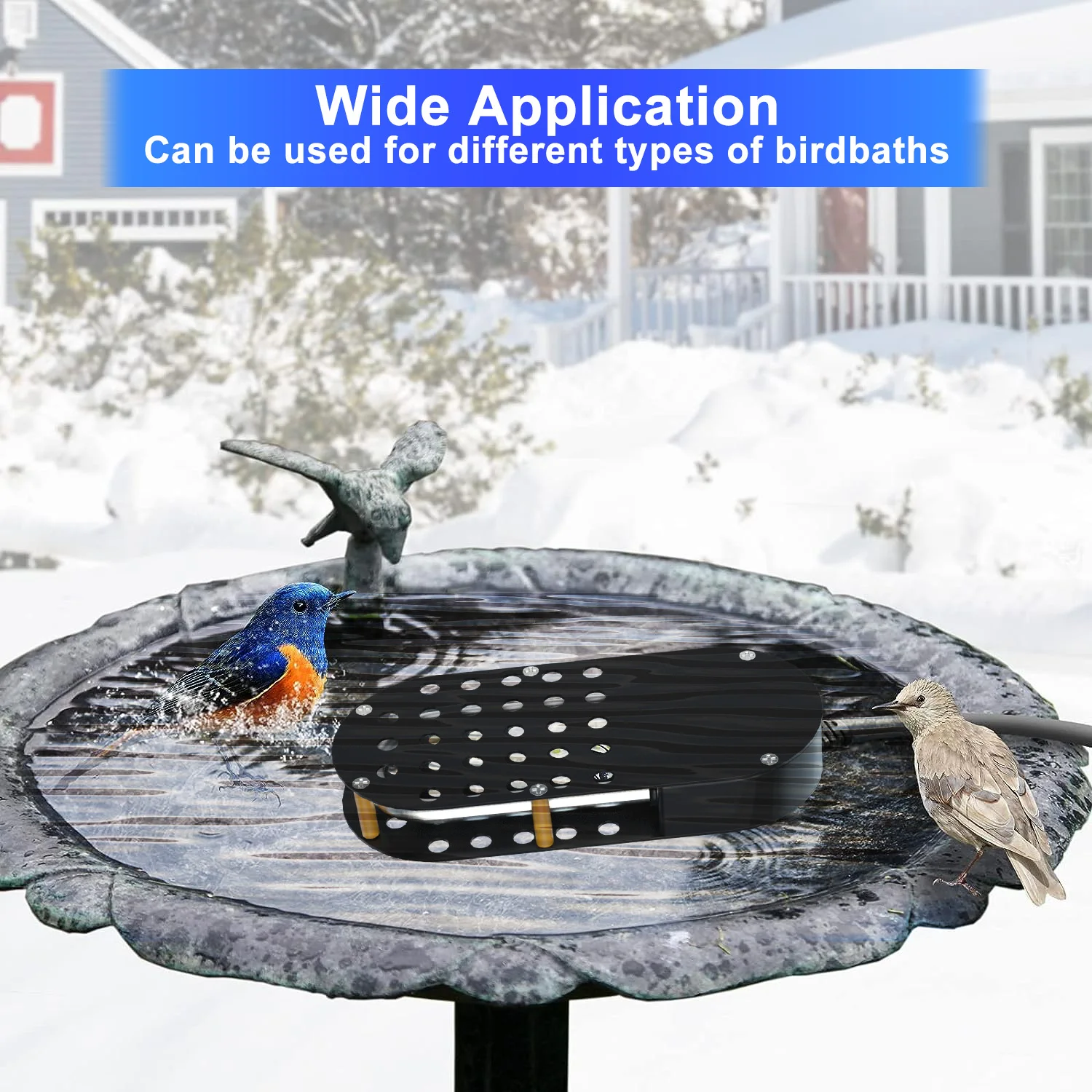 EASY TO USE: Just place the birdbath heater in the center of your birdbath, make sure the heater is full covered by water and plug in, it will start to work. The deicer heater is heavy enough that will not drop out of the bird bath.
