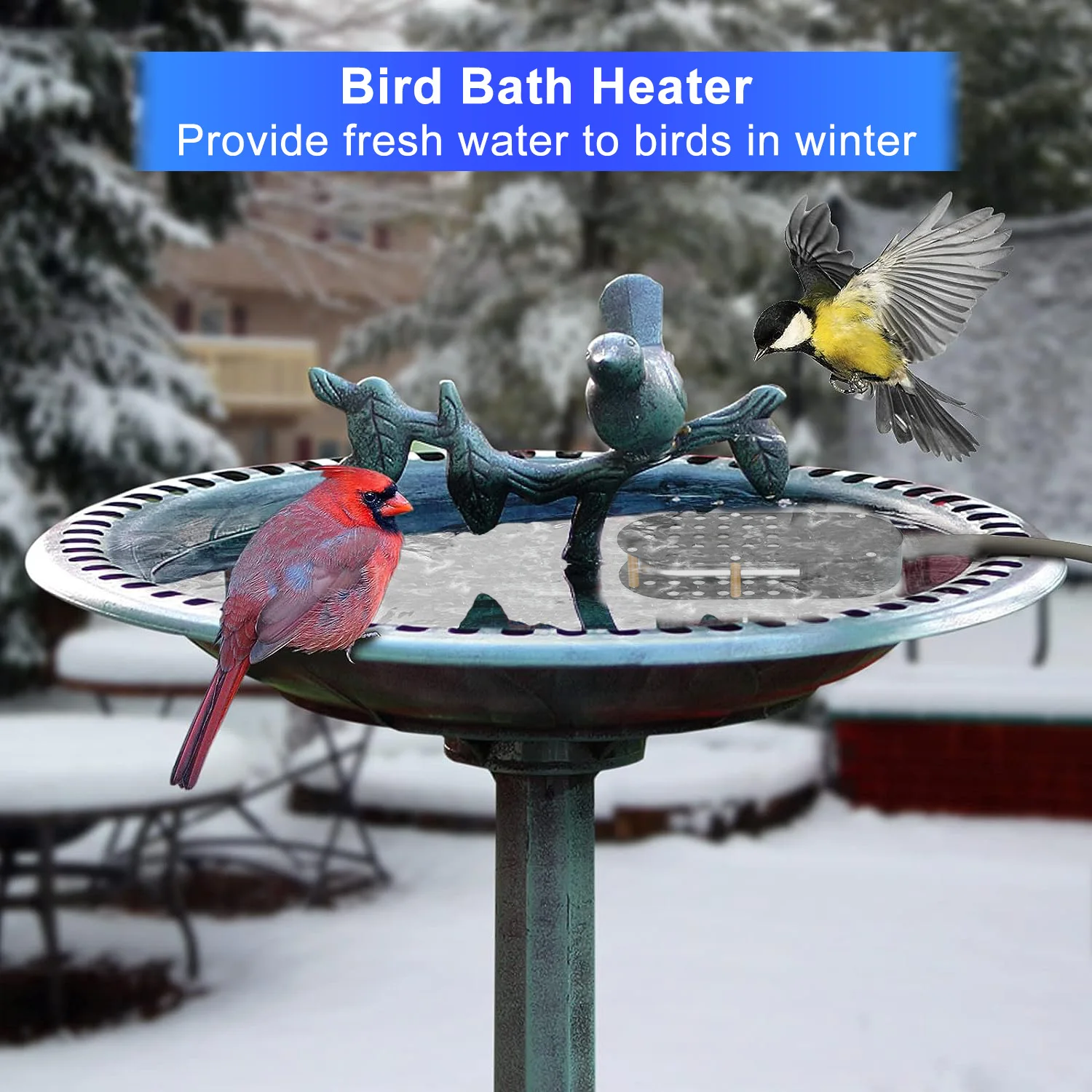 MATERIAL: The bird heater is made of heavy duty cast aluminum, easy to clean and will not calcify, rust or leave stains in the bird bath bowl. The heating element has been wrapped in cast aluminum, protect animals from scalding by the heating element.