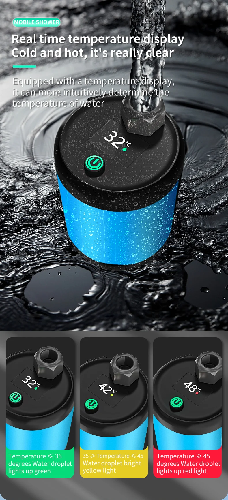 【PORTABLE ELECTRIC SHOWER】 portable shower for camping gives you a next level peaceful and comfortable outdoor shower experience to enjoy your outdoor adventures camping, travelling, beach, hiking, etc. with your family. A perfect companion to enhance the convenience and fun of your daily outdoor activities while maintaining optimal performance without affecting your skin and hair.