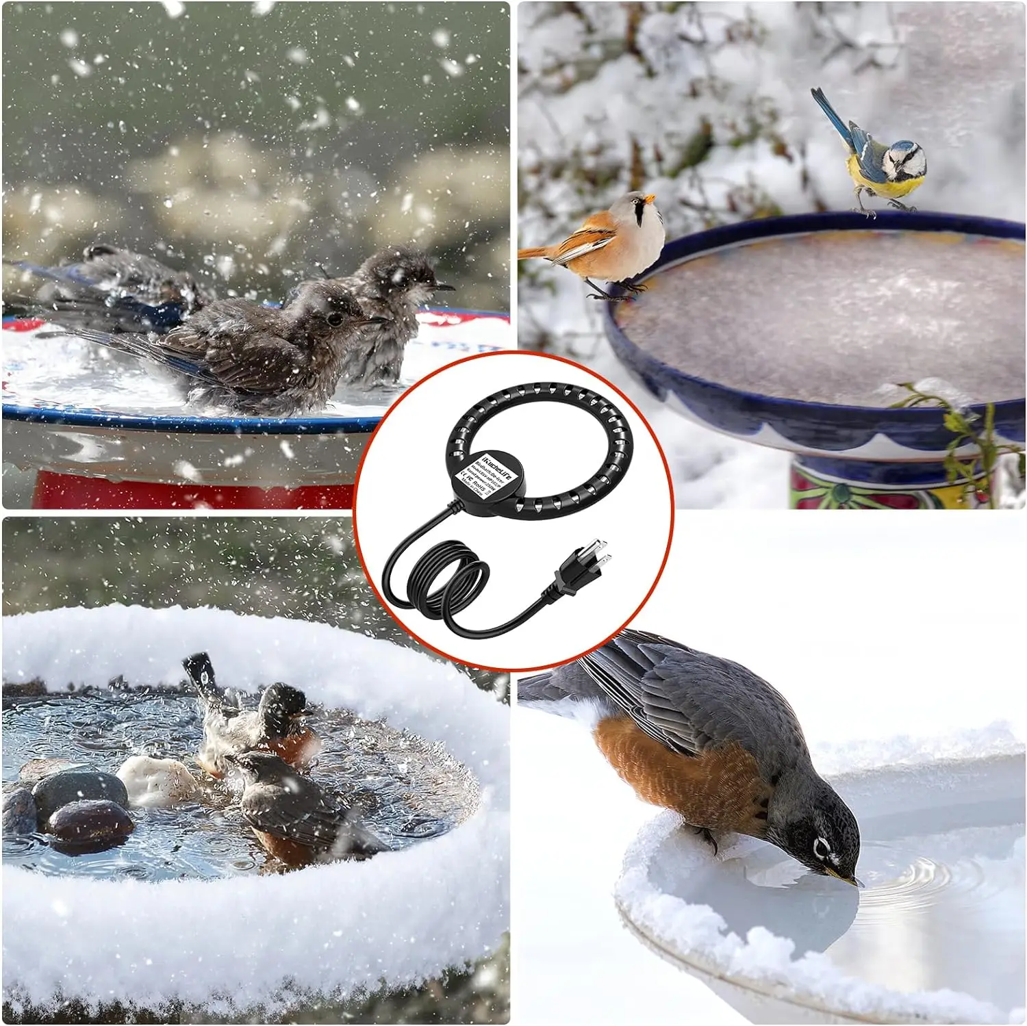 EASY TO USE: Just place the birdbath heater in the center of your birdbath, make sure the heater is full covered by water and plug in, it will start to work. The deicer heater is heavy enough that will not drop out of the bird bath.